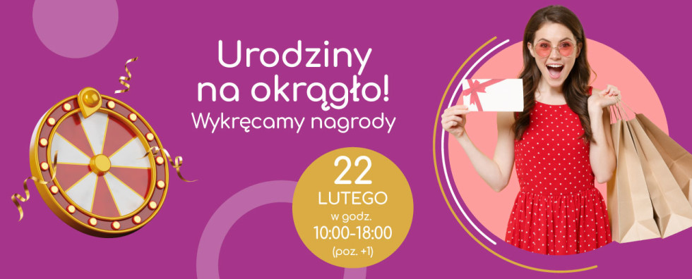 Urodziny na okrągło w Galerii Rondo Wiatraczna! 22 LUTEGO świętujemy hucznie! Wpadaj do nas między 10:00 a 18:00 i zgarniaj nagrody! Zrób zakupy za min. 100 zł, zakręć kołem fortuny i wygraj kartę podarunkową lub vouchery do najemców Galerii! Dodatkowo: · Dla najmłodszych – warsztaty dekorowania
