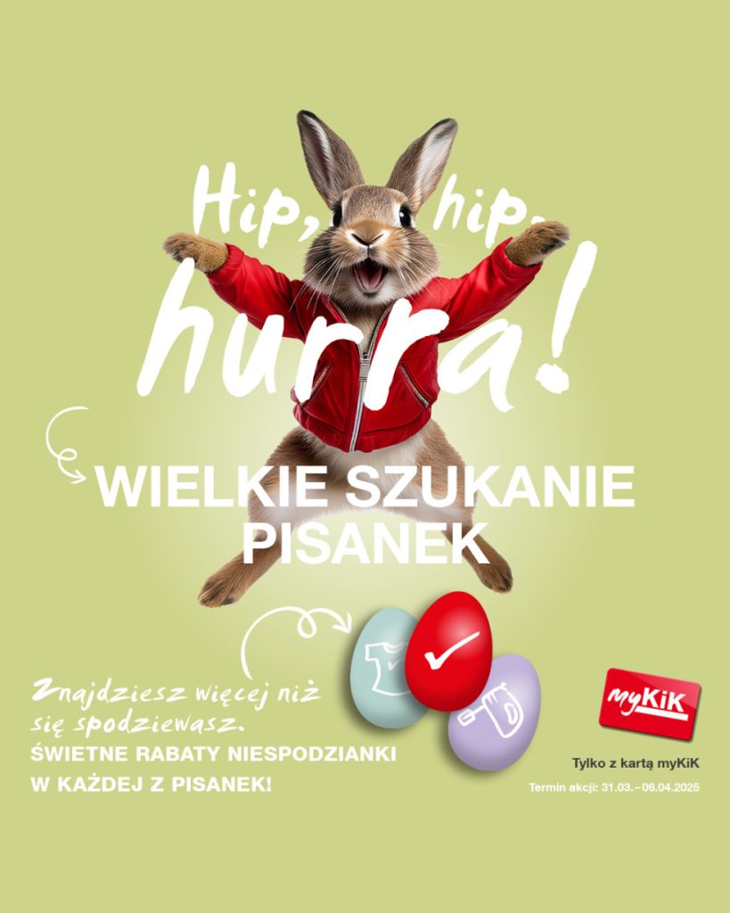 Oferta obowiązuje od 31.03.2025 do 06.04.2024 Znacie zabawę w szukanie pisanek ukrytych przez zajączka? Tak się składa, że w tym tygodniu w KiK znajdziecie pisanki z rabatami sięgającymi nawet -20%! Odwiedźcie KiK i szukajcie pisanek z mega promocjami!Zasady: Powodzenia w szukaniu ukrytych zniżek!