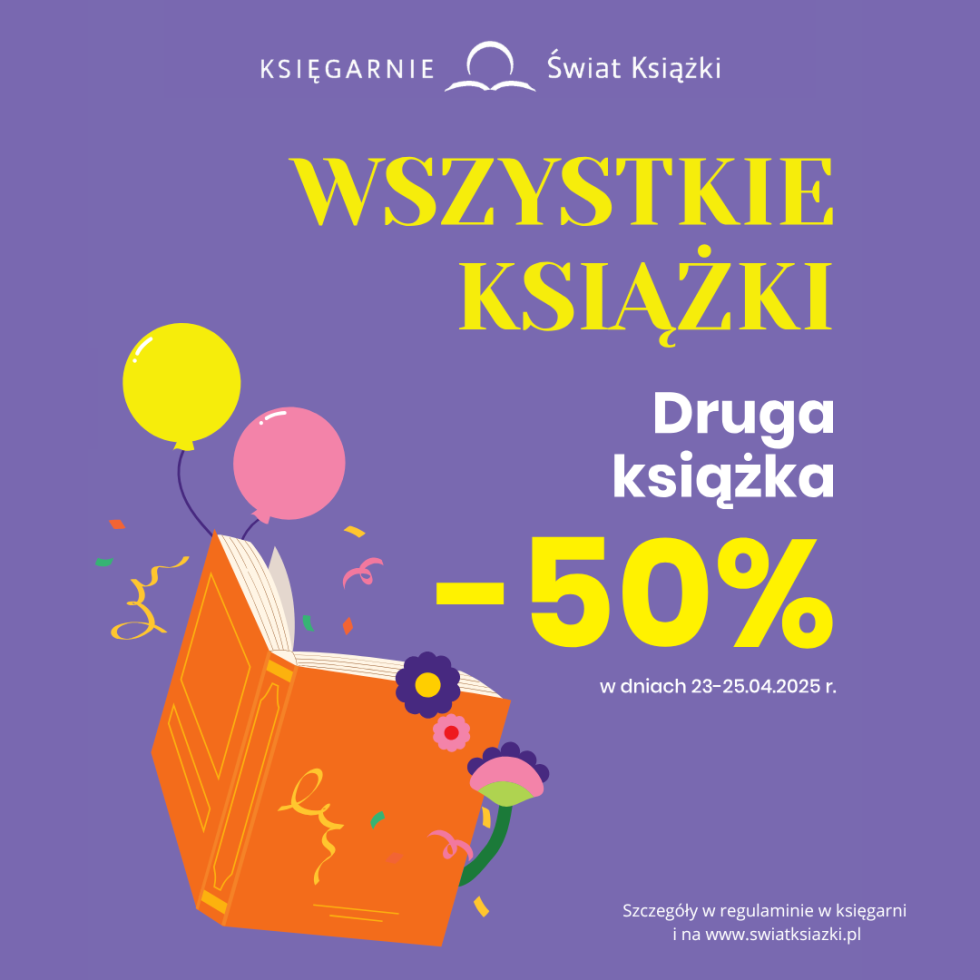 Oferta obowiązuje od 23.04.2025 do 25.04.2025 Bierzesz dwie, a za jedną płacisz tylko połowę ceny! Promocja w Księgarni Świat Książki w dniach 23-25 kwietnia zostaje rozszerzona na całą ofertę książkową. Znajdziecie w niej nowości i bestsellery z niemal każdego rodzaju literatury! Razem z nami celebruj Święto Książki!